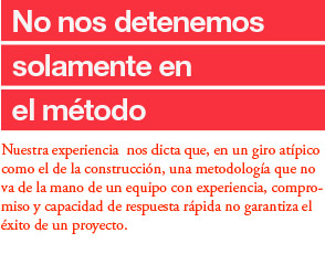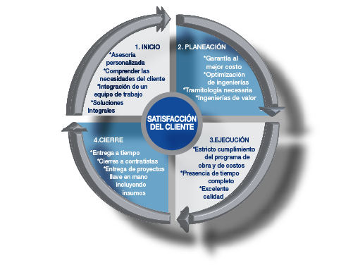Desde la validación normativa de proyectos, proyecto arquitectónico y ejecutivo, coordinación entre el diseño arquitectónico y las ingenierías de acuerdo a las necesidades del cliente y del proyecto, gestión de los permisos necesarios, construcción de la edificación y coordinación de instalaciones, suministros de acabados y equipamiento, instalación de mobiliario, equipos y accesorios, hasta la entrega al cliente. Se proporcionan servicios específicos, hasta proyectos llave en mano.