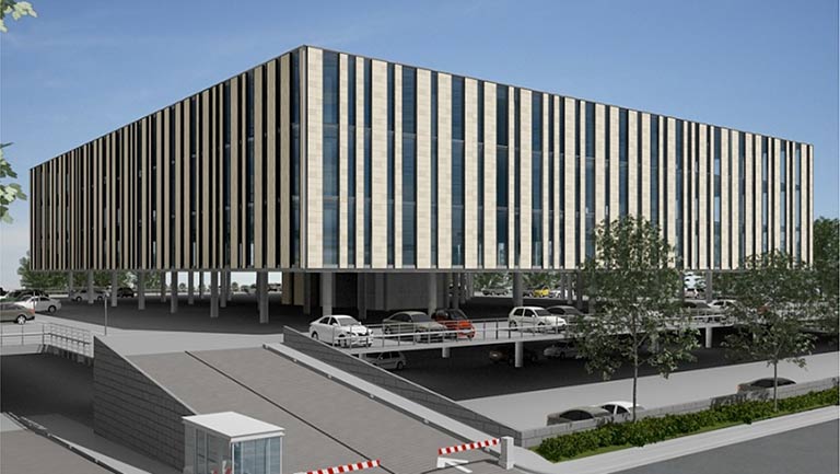 El Edificio Corporativo integra 8 Niveles de Oficinas desde Planta Baja hasta Nivel 7 y 4 Sótanos de Estacionamiento que suman 379 cajones 357 cajones normales, 11 de discapacitados, 8 de servicio y 3 para bicicletas, cuenta con 3 Elevadores y 1 Montacargas.