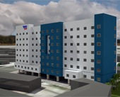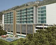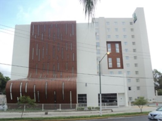 Hotel de 8 niveles con 124 habitaciones, incluyendo suites, además de 3 niveles de estacionamiento. Cuenta con áreas de servicio, alberca, gimnasio, área de juegos infantiles, lobby, lavandería, áreas de administración, cocina, serving counter, motor lobby, baños, salas de juntas, sala de consejo, gran salón.