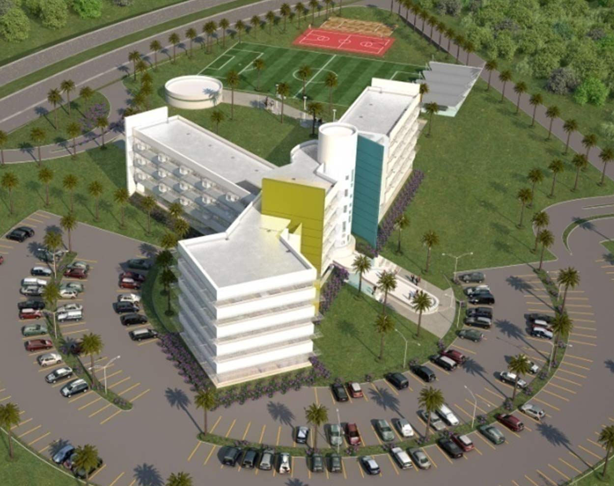 Centro académico para los niveles de preparatoria y universidad con 2 edificios de 5 y 4 niveles respectivamente, un edificio de áreas comunes de 5 niveles con oficinas, cafetería, laboratorios, biblioteca, gimnasio Estacionamiento con un aforo de 250 vehículos, canchas deportivas elevadores panorámicos con vista al mar,.